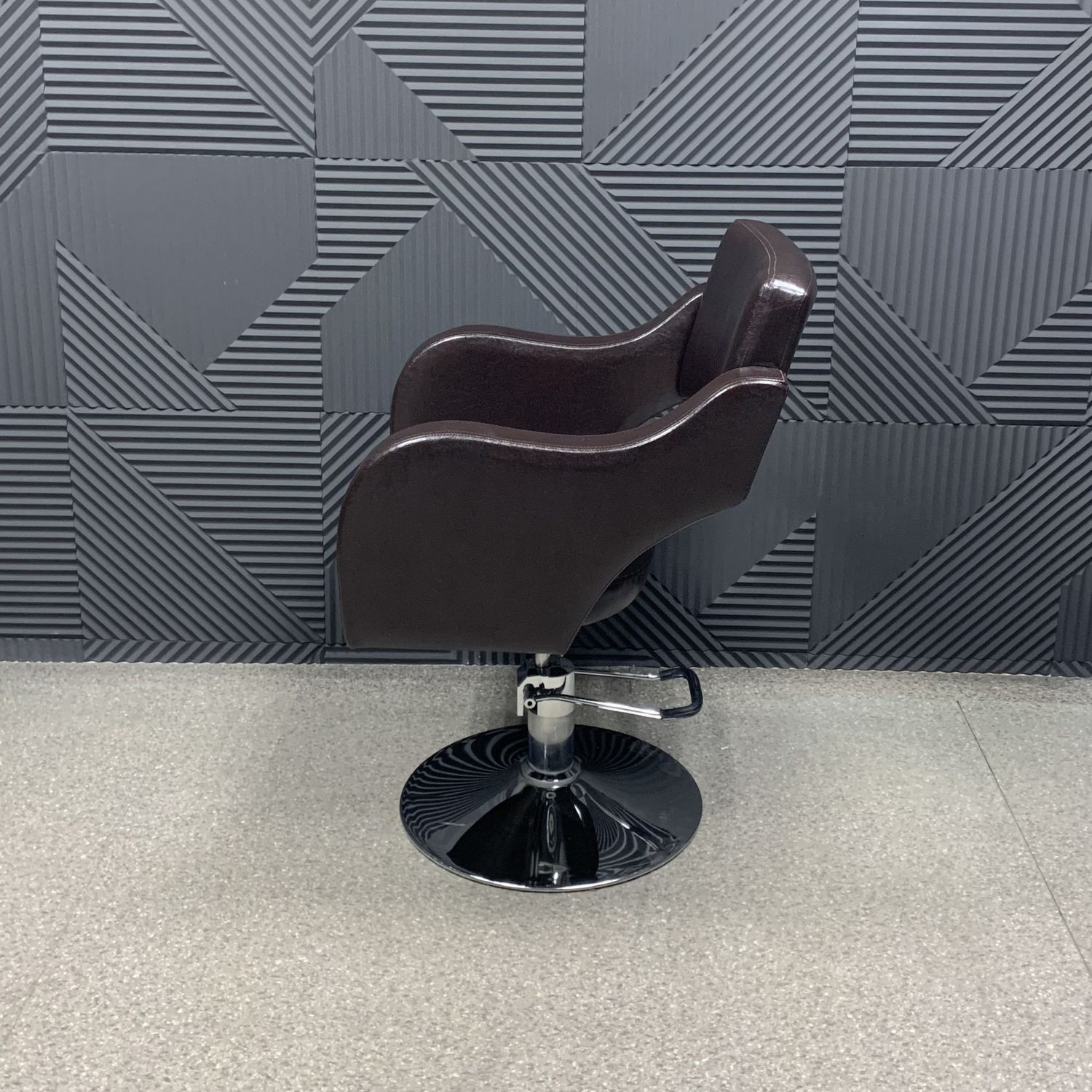 Кресло выполнено из прочной экокожи насыщенного оттенка, устойчивой к износу и простотой в уходе. Эргономичная форма спинки и подлокотников обеспечивает удобную посадку клиента, а мягкий поролон высокой плотности не теряет форму со временем. Гидравлический подъемник позволяет плавно регулировать высоту, а прочное металлическое основание гарантирует устойчивость даже при интенсивной эксплуатации.