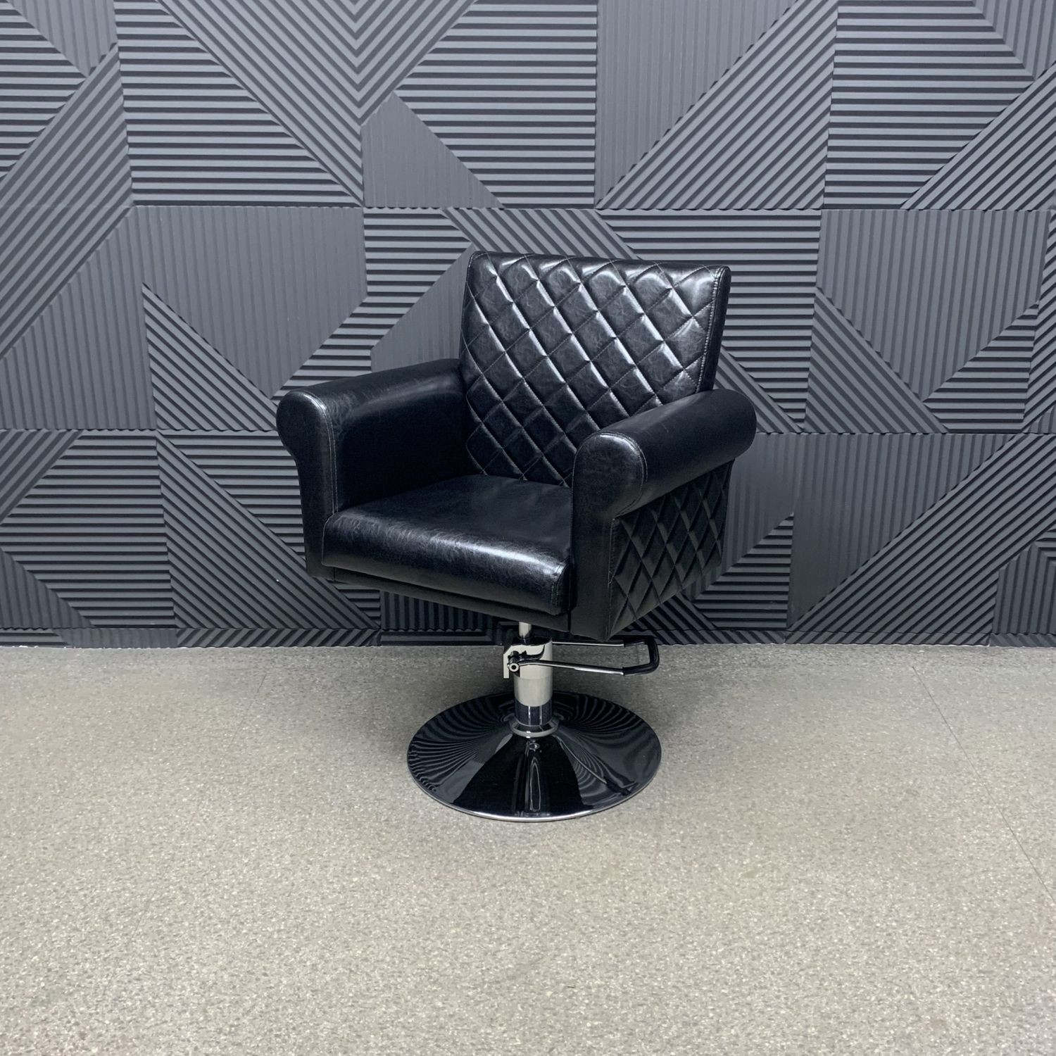 Модель выполнена в глубоких тёмных тонах и выделяется элегантной ромбовидной прострочкой. Мягкая обивка из прочной экокожи приятна на ощупь и устойчива к ежедневной нагрузке. Широкое сиденье и удобные подлокотники обеспечивают комфорт клиенту, а мастеру удобно работать благодаря плавной регулировке высоты. Основание из металла придаёт устойчивость и надёжность.