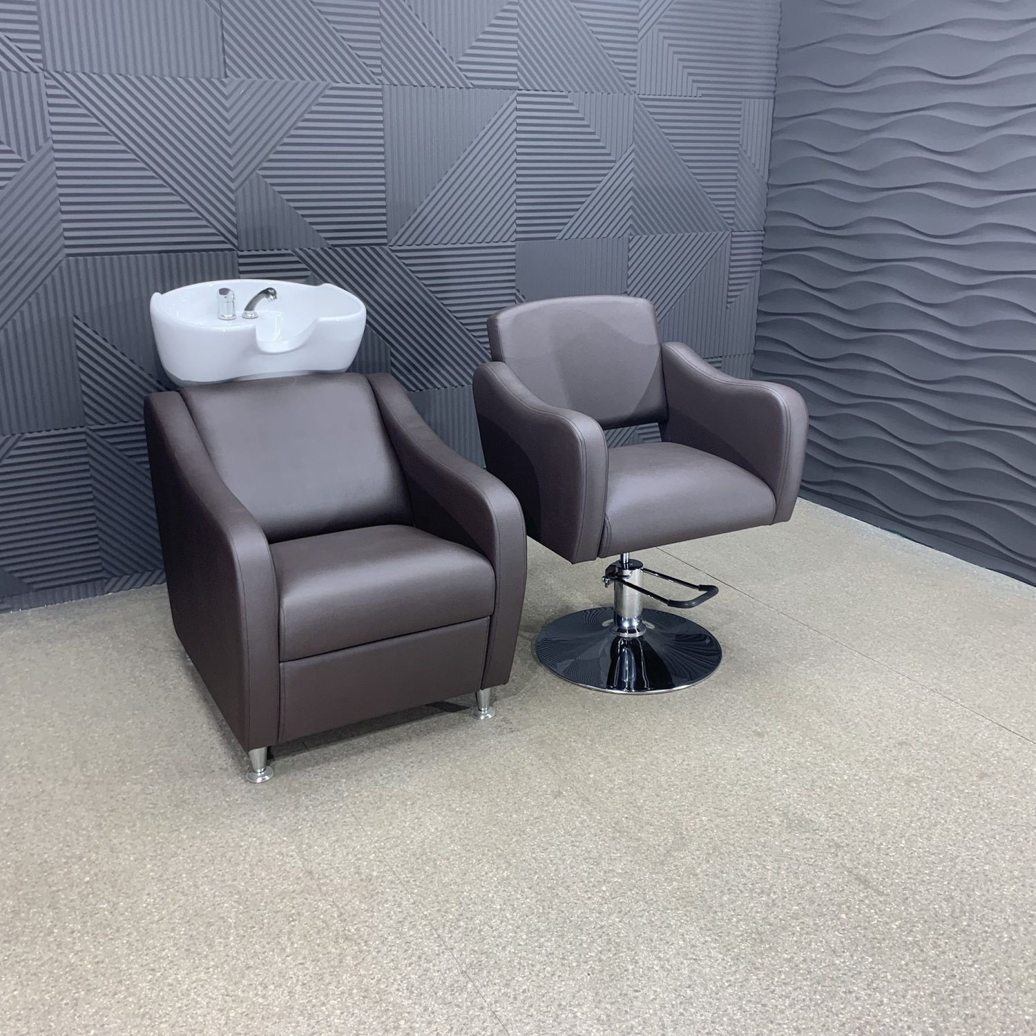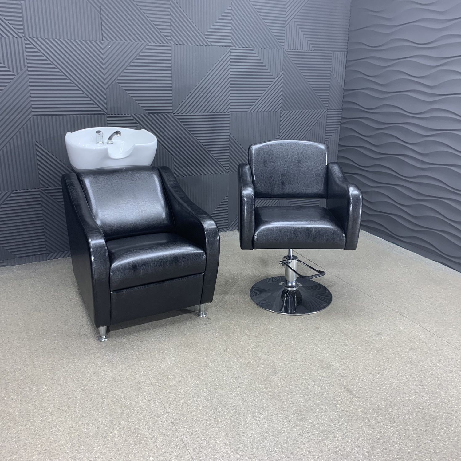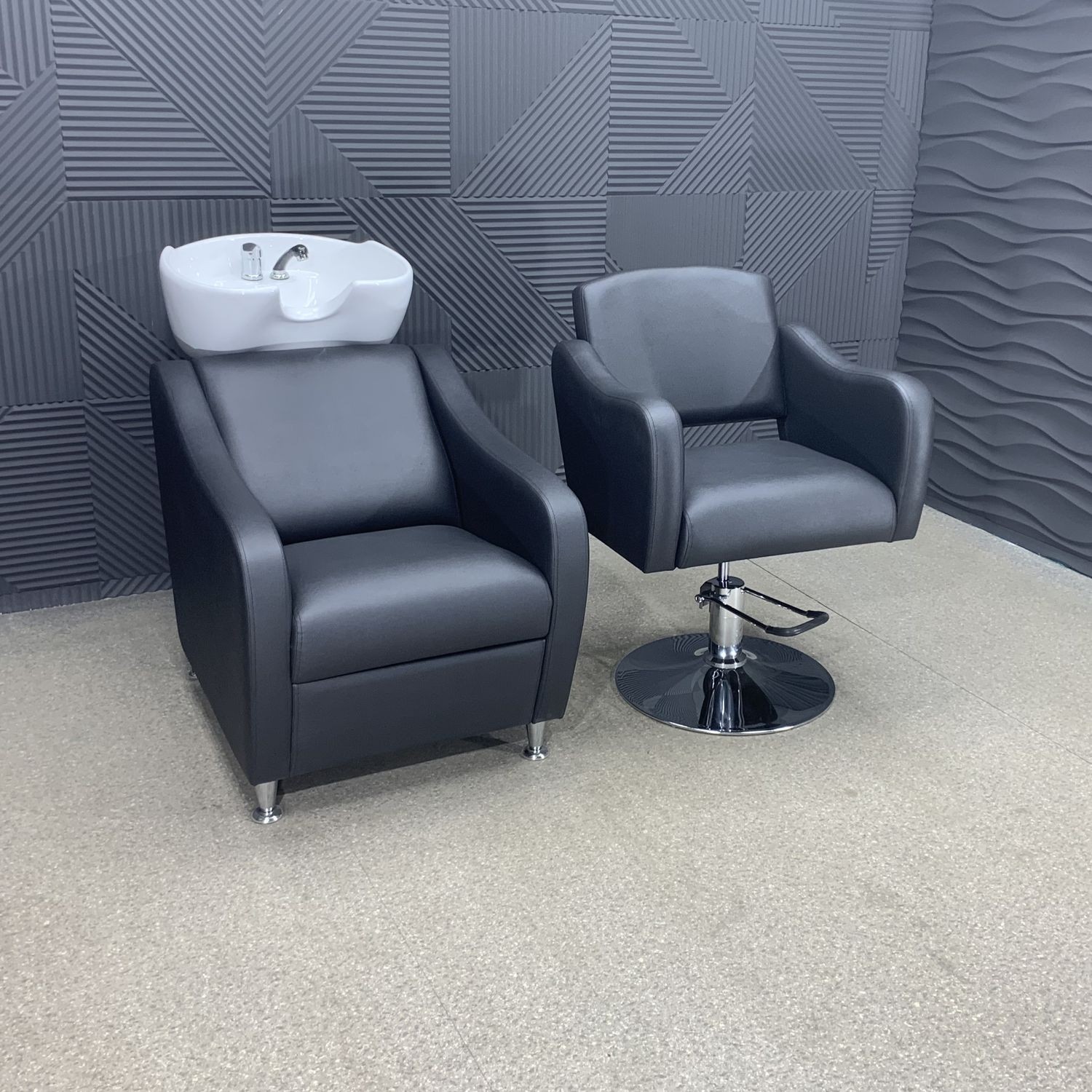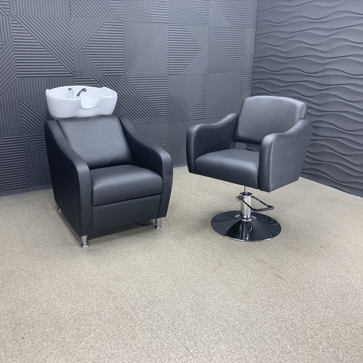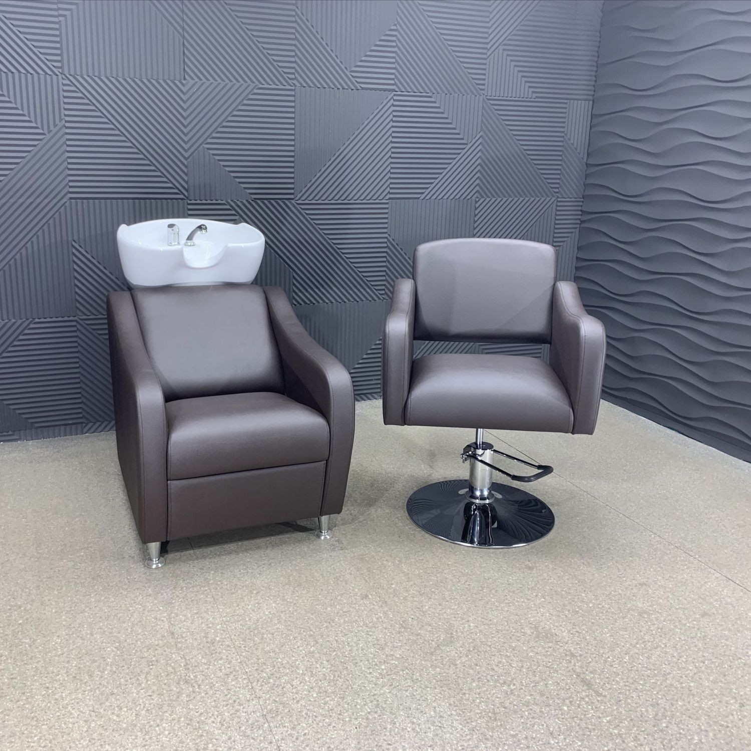 Комплект выполнен в современном стиле и идеально подходит для профессиональных салонов. Кресло оборудовано регулируемым подъёмным механизмом, устойчивым основанием и мягкой обивкой, обеспечивающей комфорт. Мойка с глубокой керамической чашей регулируется по углу наклона, облегчая работу мастера и создавая удобство для клиента.