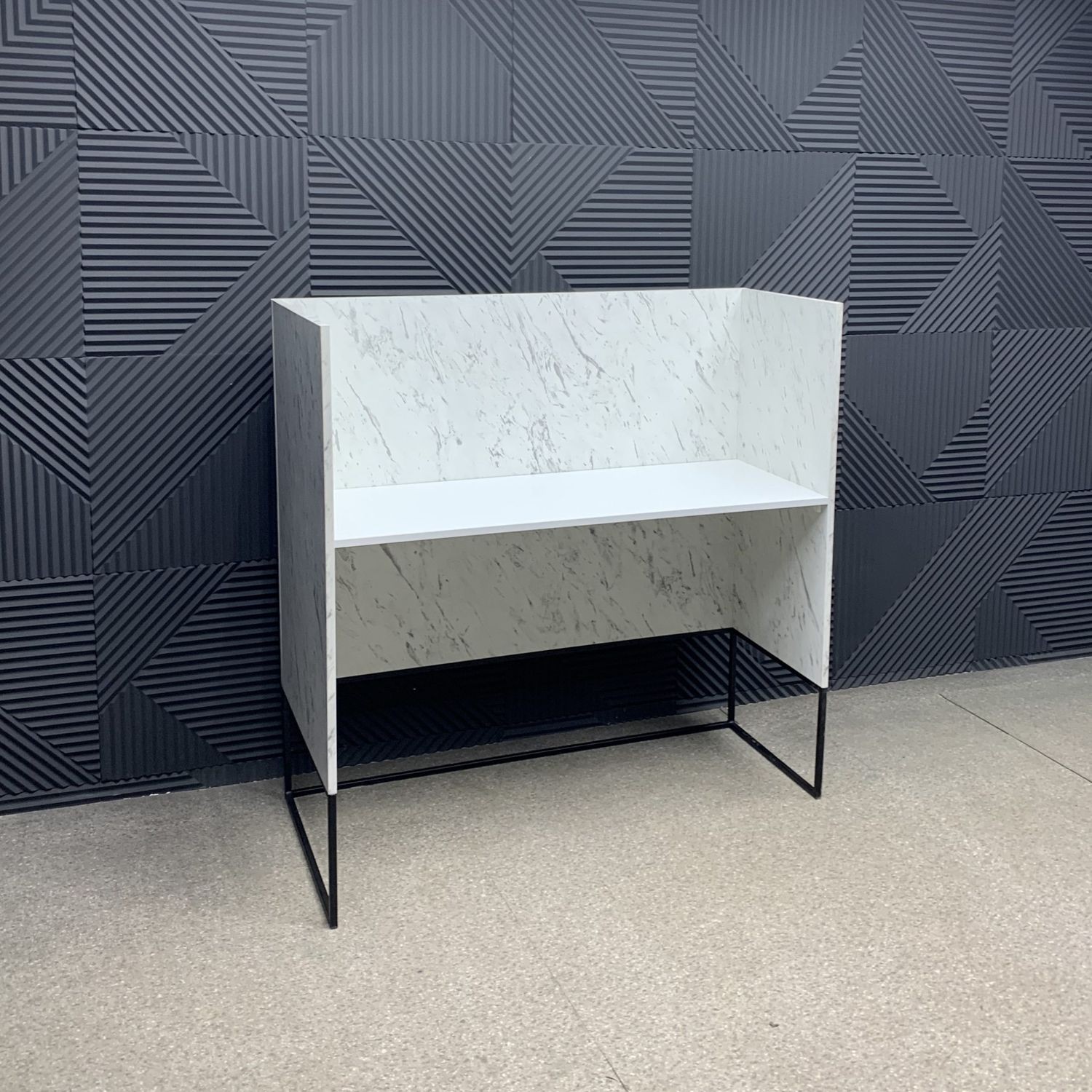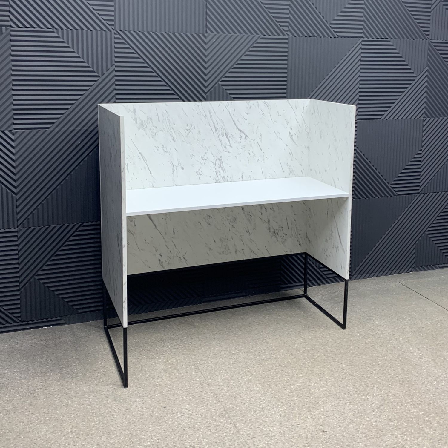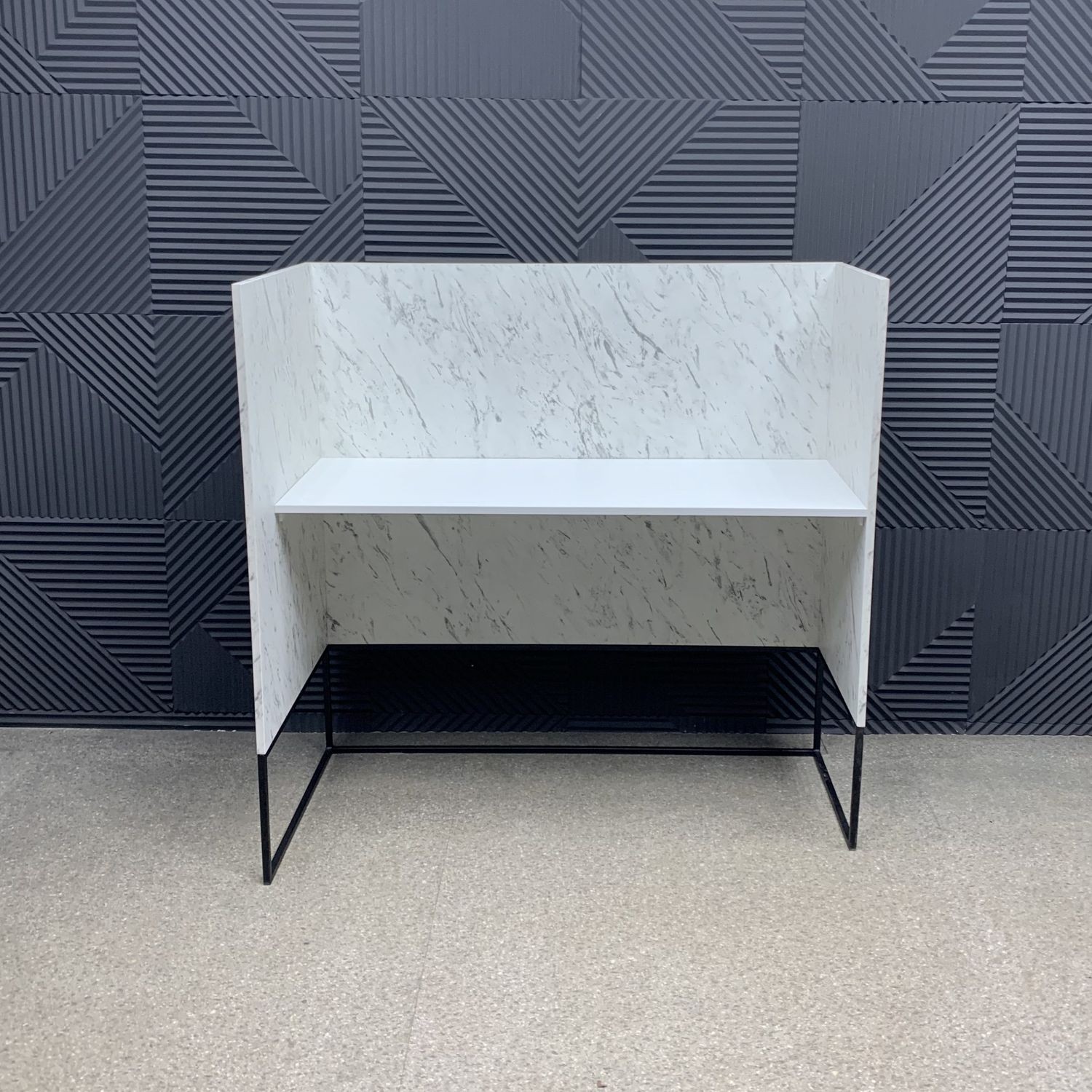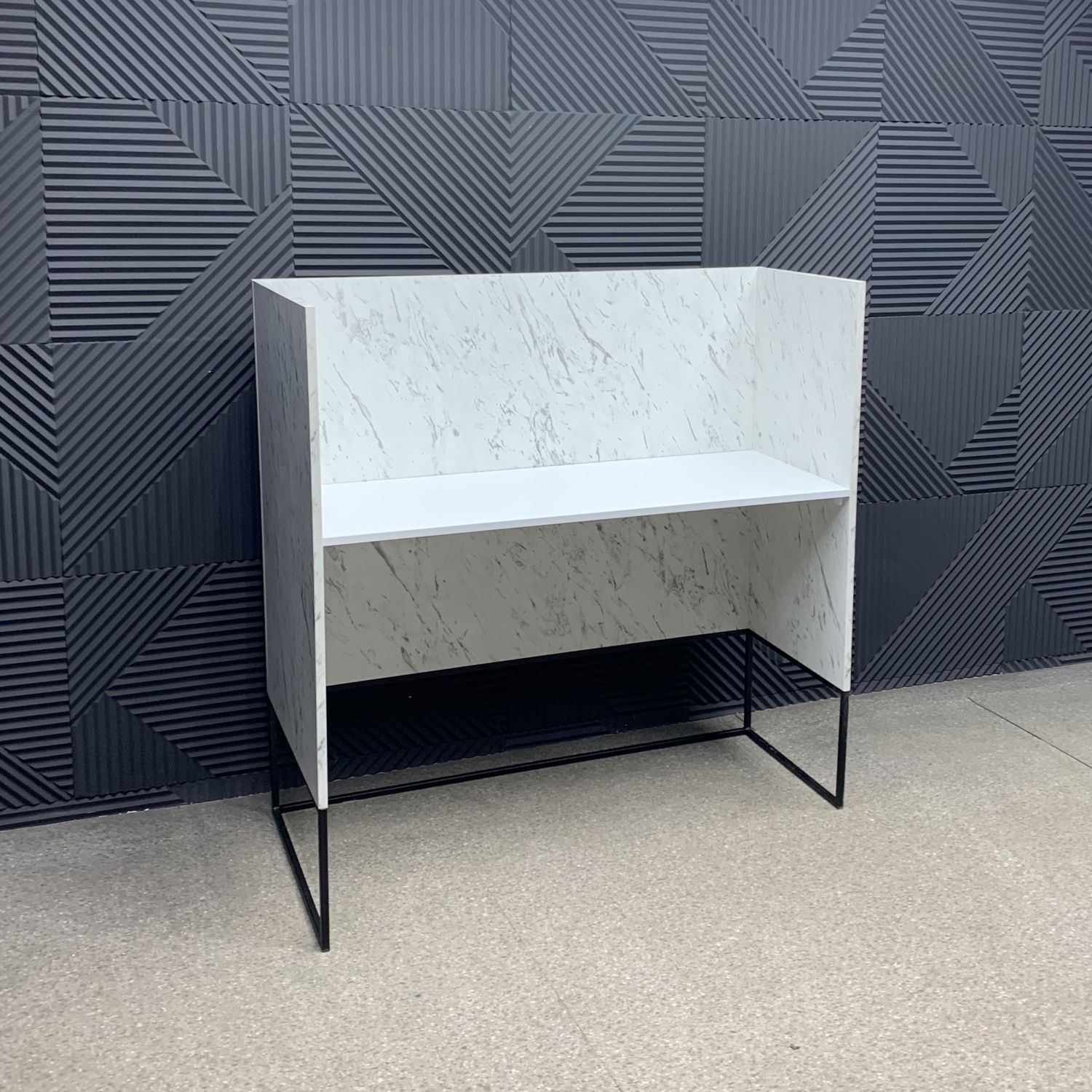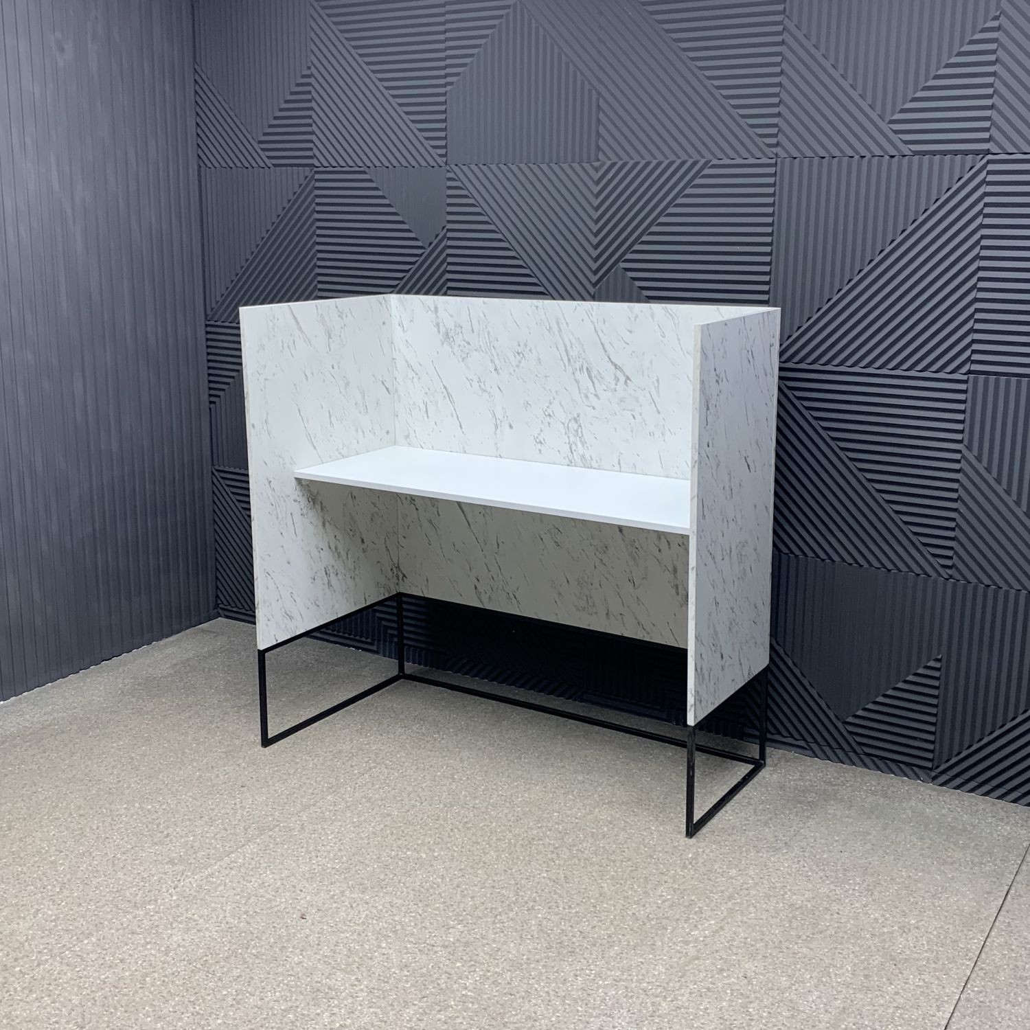 Модель выполнена в стиле лофт — строгие линии, металлическое основание и поверхность с мраморной текстурой создают эффект благородной простоты. Угловая конструкция экономит место и позволяет рационально организовать рабочее пространство администратора, обеспечивая удобный доступ к технике и документам. Прочная конструкция и качественные материалы гарантируют долговечность даже при интенсивном использовании.